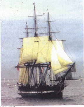 whisky distillery and transferred 40,000 gallons of single malt Scotch aboard by dawn. Then she headed home. The USS Constitution arrived in Boston on 20 February, 1799, with no cannon, no shot, no food, no powder, no rum, no wine, no whiskey, and 38,600 gallons of stagnant water. Epilogue: Ship was gone for 208 days (Jul 27, 1798 through February, 1799). Total amount of booze brought aboard in those 208 days was 252,000 gallons (not including what was salvaged from the British). Divided by Crew of 475 and the time spent at sea equals 2.55 gallons per man per day. (This is certainly a candidate for a Guiness Record.)