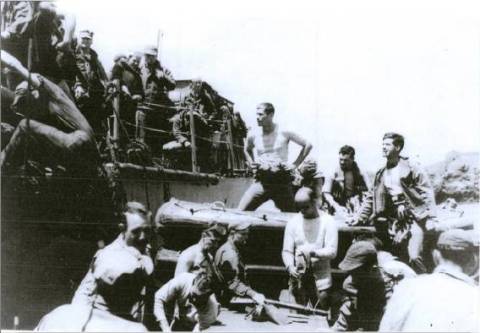 shellfire from rockets, machine guns and “88” s, all hands worked