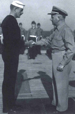 Giannotti receiving Bronze Star Medal from CWO Harris for Korean Service